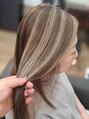 ハイライトを、太め、細め色々MIXして、お顔まわりも、明るくなるようにデザインしたカラーです。明度差のついた、ハイライトで動きがUP♪