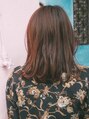 鎖骨下あたりの切りっぱなしベースにカット。顔周りを口角あたりでレイヤーを入れて切ることによって小顔に見せます。前髪はシースルーにし甘くなりすぎず大人な可愛さを。カラーはツヤ感の出るピンクメインのブラウンに。
