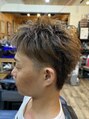サイドだけをツーブロックカット(3ミリ)を施術しております。くせ毛を生かしたスタイルで、パーマスタイル風でいい感じに仕上がりました!