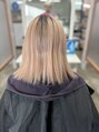 3回ブリーチ履歴のあるお客様(内一回ホームブリーチカラー)ダメージ大なので、根本リタッチのブリーチにイルミナカラーで施術してます。色味はパープルピンクに少しアッシュを混ぜた明るめトーン設定♪ピンク好きにはオススメです^_^