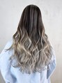 秋色くすみベージュアンブレラカラーウェーブパーマ_ba511602
