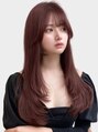ロングレイヤー 顔周りレイヤー 韓国ヘア チェリーブラウン