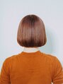 襟足は首が綺麗に見える長さでサイドはアゴ少し下の長さになるように切りっぱなしボブでカットし、横から見たときのシルエットが綺麗になるようにグラデーションを重ねるようにカットしています!秋カラーでミニマムボブ!