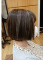 顎ラインのショートボブスタイルにブリーチハイライトでベージュ系のカラーを重ねています!赤みを出来るだけ押さえたヘアカラーです!ヘアスタイルに透明感を与えます!
