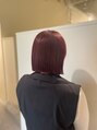 切りっぱなしのミニボブにトレンドのボルドーカラーをオンしたスタイルです。色味やスタイルウエイトなど似合わせを生かしながらカウンセリングさせていただきます!