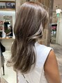 ハイライトで作るグレージュカラー、明るい所と暗い所があるのでコントラストが強く出ます♪撒いても可愛いですよ^ ^
