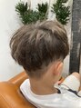 小学4年生の男の子のツーブロックスタイルです。髪質は色はベージュで強めのパーマみたいなくせ毛でしたので、それが活かせるようツーブロにしてサイド襟足はスッキリさせました。くせ毛の子におすすめです。