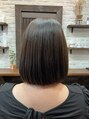 重ためボブで、お手入れ簡単、忙しくてなかなかカットに来られなくてもいい感じに伸ばせます!カラーは、紫で艶がありつつ透明感のある仕上がりに!