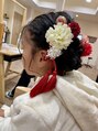 7歳の七五三スタイル。左下にふわゆるにまとめさせて頂き、編み込みもプラス。顔周りはおくれ毛をだして、巻いて今っぽく仕上げました。