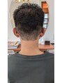 フェードカット×くせ毛シャープなシルエットにクセの躍動感をぷらす。ジェルでウェットな質感◎