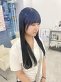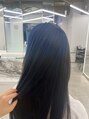根本の方のみブリーチ、根本はブルー毛先はブラックにオンカラー
