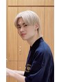 襟足を少し長めに残しセンター分けからサイドは綺麗に流れるハイトーンショート。韓国アイドルを意識したスタイリングです。