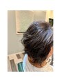 白髪にお悩みのお客様、白髪染めの頻度にお悩みのお客様におすすめの白髪ぼかしハイライトスタイル。細目にハイライトを入れたのち全体にグレー系のカラーをし、白髪をぼかしてお洒落な仕上がりに♪パーマとの相性も抜群です!