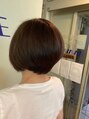 ボックスボブの前下がりスタイルオーガニックアルカリカラーのピンク系のブラウンを使用しました。
