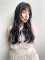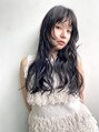 ロングパーマスタイル。顔まわりはワンカール、全体はゆるめのウェーブパーマの無造作ウェーブロングです。