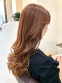オレンジベージュで、巻いて華やかに!顔まわりカットで小顔効果大です。