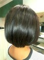 ベーシックなワンレングススタイル。前髪も同じ長さで、髪の量はかなり減らしてます。ピンクが好きなので、カラーもピンク系の白髪染めで艶良くしてます。