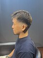 ベリーショートの七三分けフォーマルスタイル。サイドは低めにスキンフェードを入れたツーブロックでスッキリ。トップは流れをつけられる長さに残しています。髪の生え方やクセを計算してカットしてあるので、セットなしでも自然なスタイルになります。