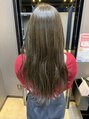 グレージュ系カラーで、柔らかい髪質・髪色が、外国人風っぽくロングをゆるっと巻いて♪