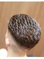 <理容室><バーバー>前に向かって生えている直毛でもアイロンパーマでバックに流れるように。周りはスキンフェードでパリッとした印象に。ぜひお試しを。