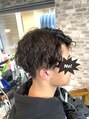 ツーブロマッシュベースに根本からしっかりスパイラルパーマ。サイドパートでも下ろすのも両方OKです。毛先にカールを入れすぎないスタイル。