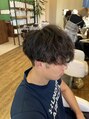 3.4ヶ月伸ばしていた髪をさっぱりカットし、パーマしました前髪は長めに残し後ろの刈り上げは高くし横から見た時に前下がりになるよう仕上げましたメンズスタイルは前下がりスタイルは人気なので是非皆さんもお試しください!