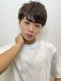 似合わせ小顔カット。人気のマッシュベースのカットに、ツイストスパイラルのパーマでランダムに束感を出す事で中性的な中にも男らしさも MIXしました。スタイリングも WAXを揉み込むだけで再現可能となっております。。ぜひ一度ご相談下さい。