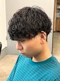 (大阪/メンズカット/フェード/波巻きパーマ/眉毛/センターパート/ニュアンスパーマ)
