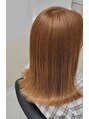 ブリーチなしカラーで出来る限界の明るさまで出したゴールドベージュです☆髪質改善アンジーカラーなので明るくても毛先まで艶感を♪ぱつっとスタイルなので外ハネスタイルや巻きスタイルがおすすめなレングスです☆
