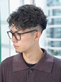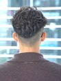 刈り上げ高めの前下がりマッシュに強めのスパイラルパーマでリバースに流れるスッキリしつつも遊びのある男らしいスタイルです!是非一度ご相談ください!