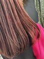 濃いめの赤とオレンジのカラーです。ブリーチ無しで、3~4回ほど同じ赤系のカラーを繰り返しています。深みを出したい方は、同じカラーを継続してみてください♪