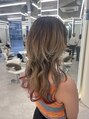 カット、バレイヤージュにブリーチ、オンカラー、トリートメント