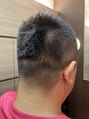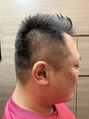 Aラインのシルエットでカット サイド、バック、地肌が白く見えるぐらい真っ直ぐに短く刈り上げる WAXでスタイリング