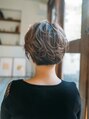 ショートボブをベースに7:3くらいで前を分けアップバングにすることでクールな印象になります。色味は暗いブラウンにし、クールながらも強い印象は出ないようにしています。全体に動きをつけて立体感が出るようにしました。