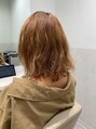 ミルクティーベージュ。赤の残留がかなり有る状態から毛髪強度をあげながらのブリーチ施術。ブリーチカラーと髪質改善トリートメントで綺麗な色味とツヤとハリのある髪質に仕上げることが出来ます。