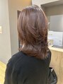 大人女子ヘア。ミディアムのレイヤースタイル。たっぷりとレイヤーを入れる事で、ワンカールで動きと横から見た時の毛流れ、丸いシルエットを出す事ができます。カラーはピンクブラウンで秋色に