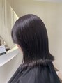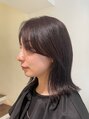 伸ばしかけ前髪は少しレイヤーを入れて流しやすく。全体の長さは肩についてはねる長さ設定。髪のボリュームが出やすい方にもオススメのレングスです♪カラーはイルミナサンセットとアンバーをのせて、秋冬の支度。