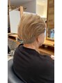 白髪ぼかしカラーで褪色した状態に、細めのローライトを入れていつもの色をオンしました。キンキン防止対策です☆