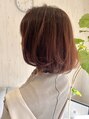 アゴ下2センチのボブベースでカットして、トップにレイヤーを入れたスタイルです!ピンクブラウンカラーでフェミニン感を出しています!ストレートアイロンで中間からしっかりカールさせて、韓国アイドル風に仕上げています!