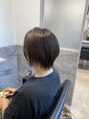 襟足の癖は人それぞれ。少し長めに残して浮かない様に。扱いやすい丸みあるショートボブです。カラーはカーキーベージュ。