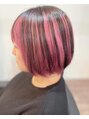 ブリーチ後、トップを残してパープルピンクをON。トップは暗めに色味をいれてアンブレラカラーに♪