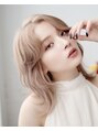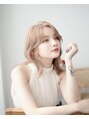 ブリーチ2回~のハイトーンホワイトベージュ。顔周りに動きを出しつつ、もみ上げ部分にデザインを入れ、フワッと柔らかいイメージに
