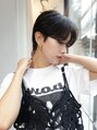 アッシュブラックやグレージュアッシュの暗髪でクールに決めたナチュラルマッシュショート。センターパート&前髪パーマでニュアンス感ある動きを演出。クールフェミニンな大人ショートに仕上げます。アッシュオリーブやミントアッシュの艶カラーもGOOD。