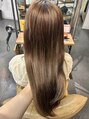ブリーチ無しハイトーンベージュからの暗髪カラー緑濃いめのブラウンで暗めのグレージュカラーに!真っ黒では無いけど黒髪見えなカラーです!