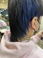 メンズショートのインナーカラーのブルーです!ショートウルフの女性にもこんな風に大胆に入れてみるのはいかがですか??推し活、ダンスのイベント、フェスなどに最適です!2回以上のブリーチなら、色抜けがシルバーっぽくなりますよ。