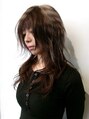 低めのレイヤーベースに大きめのカール感のパーマをかけて海外感のあるスタイルに