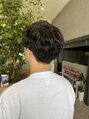 ツーブロックに後頭部は低めに刈り上げて、ボリュームが出過ぎないよう縦落ちのスパイラルパーマでナチュラルに仕上げました。