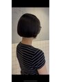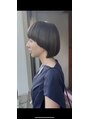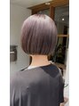 大きめのハイライトで赤みを削って、濃いグレーを入れてます。カットは、顔周りにレイヤーをしっかり入れてまきやすく動きやすいように。