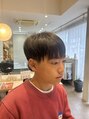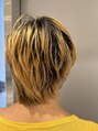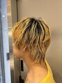 金髪×ウルフ元々毛量が多くクセ毛のお客様で前髪の長さと耳前の雰囲気のオーダー。襟足は刈り上げず重みを残しながらもヘアセットするときに動かしやすいようにしました。 セットしたときに無造作に動く毛とヘアカラーの印影を生かしたヘアスタイルです