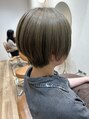 丸みを出した、柔らかいショートスタイル。カラーはオリーブベージュで秋冬感を出しました。